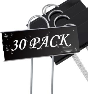 Each label measures 4" x 2.75" and each stake is 16" tall.