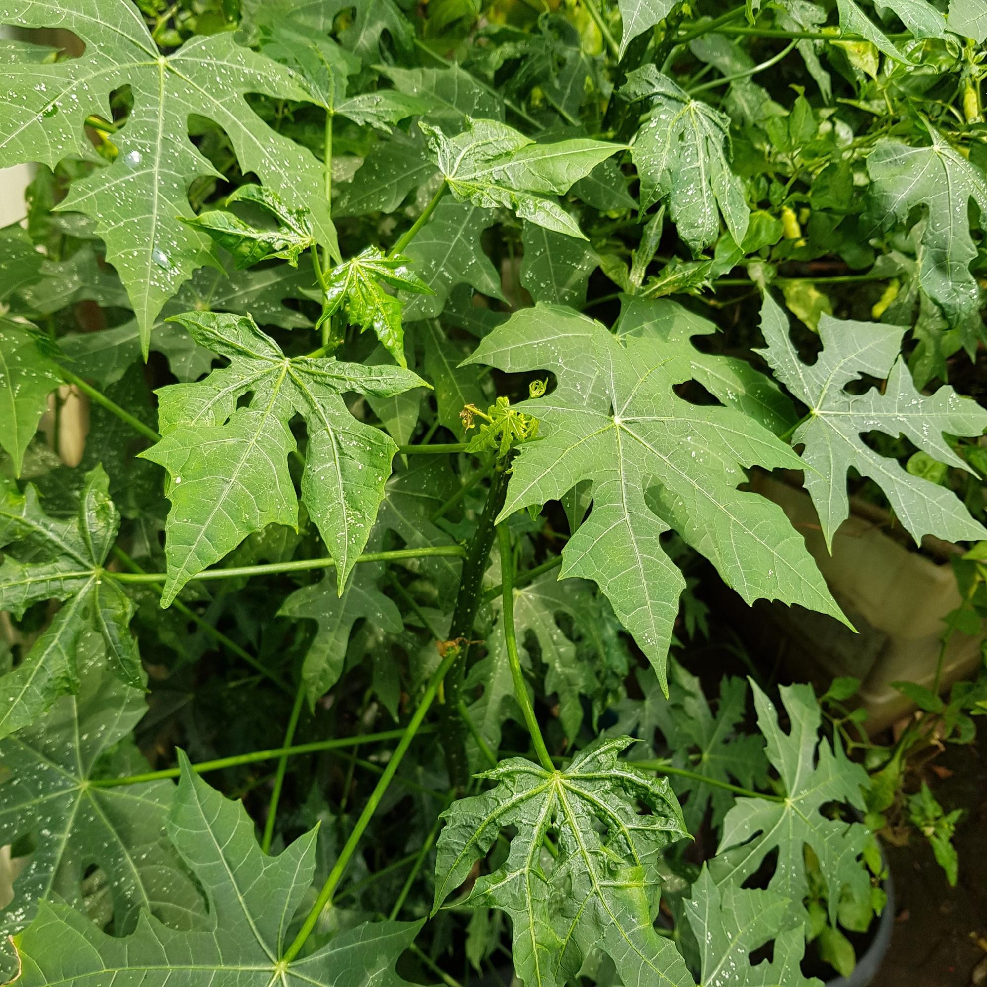 Cnidoscolus aconitifolius are usually used as plants for fences. The leaves look slightly like mini papaya leaves, but I only recently Found out that the young leaves are edible [3], though they have to be cooked for at least 15 minutes to make them safe to eat (they contain cyanogenic glycosides [3]). Pepaya Jepang does not have any connection with Japan as the local name suggests and actually comes from South America, but Indonesian naming sense is not the best. The plants look pretty nice and form good foliage for fences. C. aconitifolius also easily lives in tropical areas.