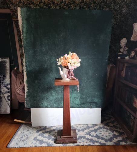 I’ve also done some setups that are a bit more involved. I use hand-painted backdrops as well, even when I’m traveling. Don’t have a backdrop stand? No worries, you can paint a canvas and set it up on a room divider, like so:
