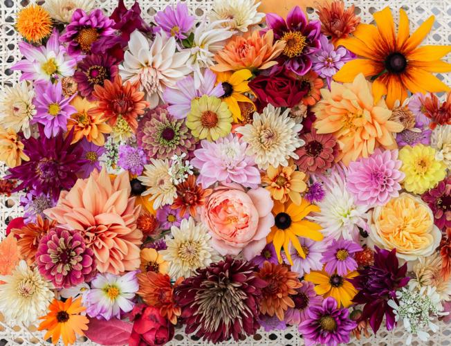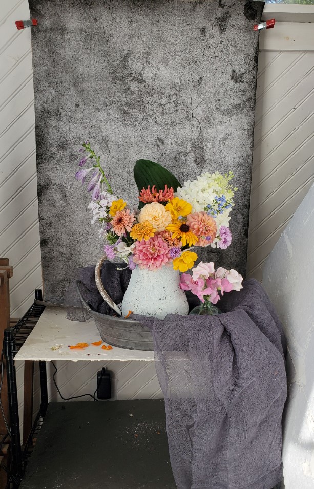 Just a rule of thumb when it comes to photographing with a pre-planned background, if you’re laying your items on a surface for a ‘flatlay’ style photo, be mindful that the texture of the surface will most likely be in sharp focus in your photos. Texture can be a great element to bring to an image, and can serve as a great contrast to home grown florals, fruits, or veg.
