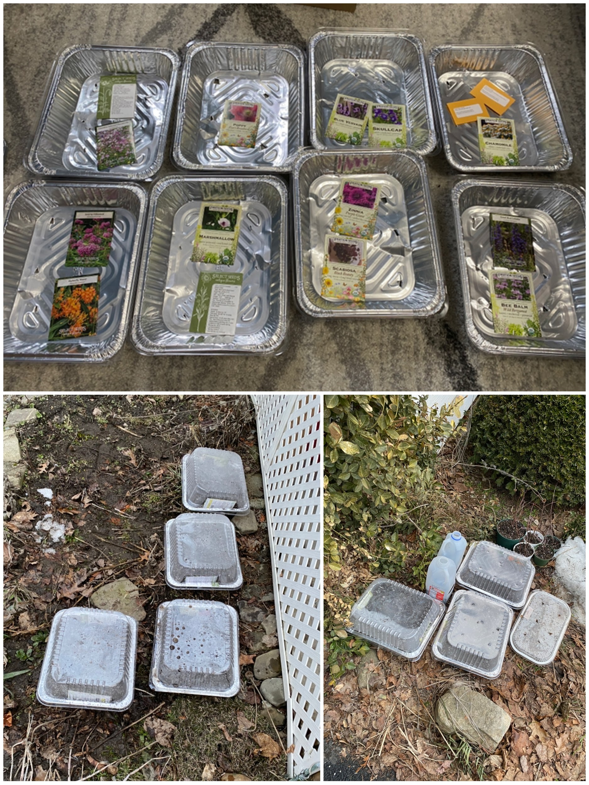 Today was extremely windy, so I moved my winter sown seeds to the porch for protection and watered all the containers of seeds. Working on convincing mom to grow grapes as a privacy screen on the porch. She keeps changing her mind. Zinnia and scabiosa seedlings have been growing really well inside. Lettuce is germinating as well, hopefully in a few months, mom will get free lettuce from my plants.