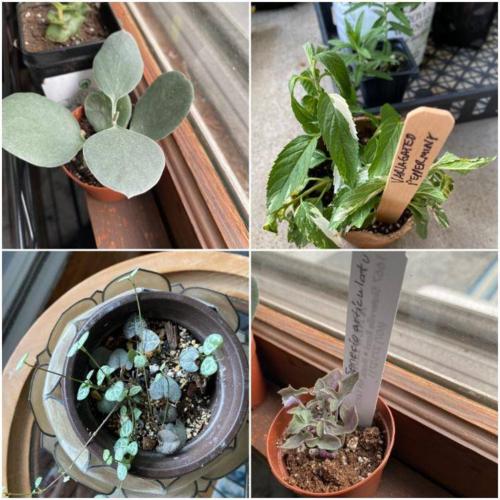 I moved my hardening-off plants out to the front porch so they can get used to outside again. So far, they are doing well. Winter sown seeds are growing. Mom requested that I dig out all the sedums left from the previous owner because she wants them to move to where she will have ornamental grass. Yesterday, I gave my neighbor two tomato plants that I grew from seeds and she showed me the room she uses to grow seeds and her greenhouse full of seedlings that she’s growing, along with the two zinnias I gave her that are thriving.