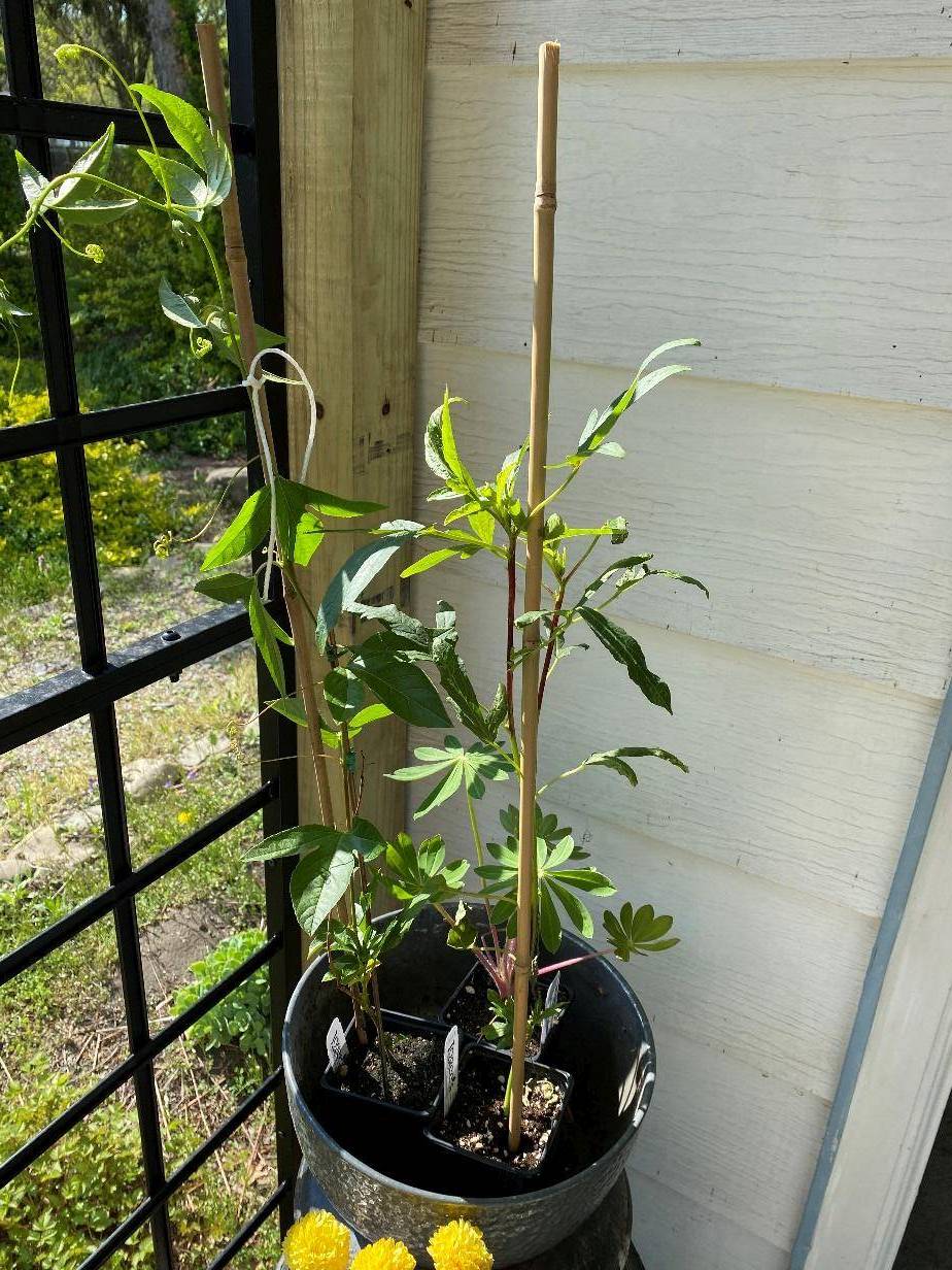 So, the landscaper came, and he’s booked up until June/July to start work on the landscaping, so I got to bring out my fabric bags and put everything in them around the backyard. I know some vegetables will be planted in the pots anyways. Mom’s disappointed as well, but we can do little things here and there. We can dig out the plants next to the trellis so we can put in the Passiflora I got. I can plant a few more shade tolerant plants I got. We will put soil in my fabric bags and use it to smother the weeds in the area my flower bed will be so I can grow vegetables, flowers, and herbs. I can grow sunflowers and corn in front of the ugly hedges in the backyard.