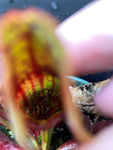I got a greenhouse, but I don’t know when it will be built — I hope soonish. Dahlias should bloom in a week or so. Found a bunch of dead wasps in my sarracenia, so mom’s grateful that I have that to prevent wasps making nests around the house.