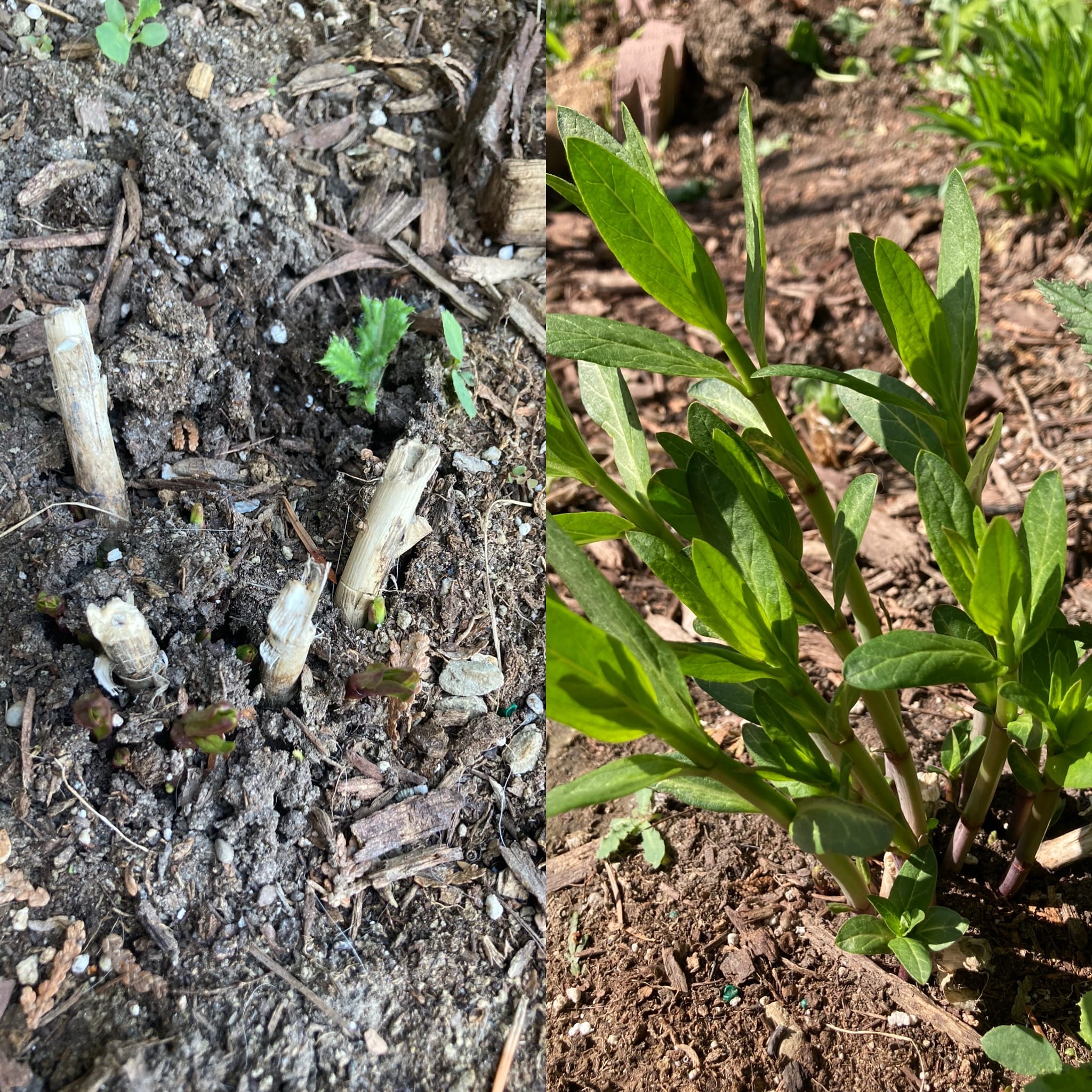 new shoots and leaves; and the hardy hibiscus, which I wasn't worried