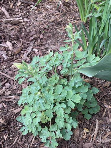 A reliable spring plant: our blue columbine (Aquilegia caerulea), budding very happily.